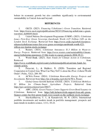 Page 156 - "Green Investments and financial technologies: opportunities and challenges for Uzbekistan" International Scientific and Practical Conference