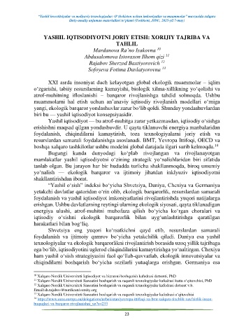 Page 23 - "Green Investments and financial technologies: opportunities and challenges for Uzbekistan" International Scientific and Practical Conference