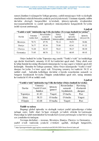 Page 24 - "Green Investments and financial technologies: opportunities and challenges for Uzbekistan" International Scientific and Practical Conference