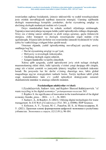 Page 25 - "Green Investments and financial technologies: opportunities and challenges for Uzbekistan" International Scientific and Practical Conference