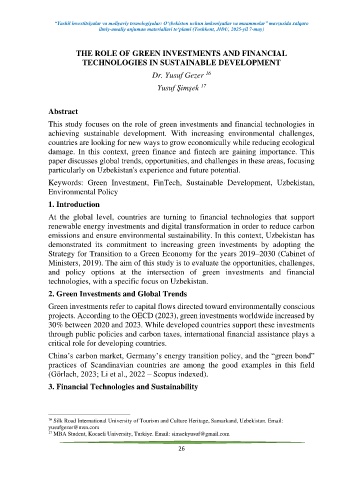 Page 26 - "Green Investments and financial technologies: opportunities and challenges for Uzbekistan" International Scientific and Practical Conference