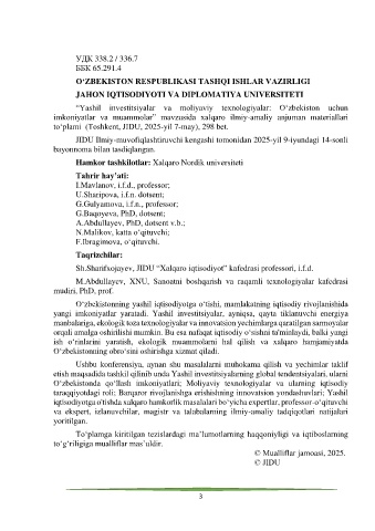 Page 3 - "Green Investments and financial technologies: opportunities and challenges for Uzbekistan" International Scientific and Practical Conference