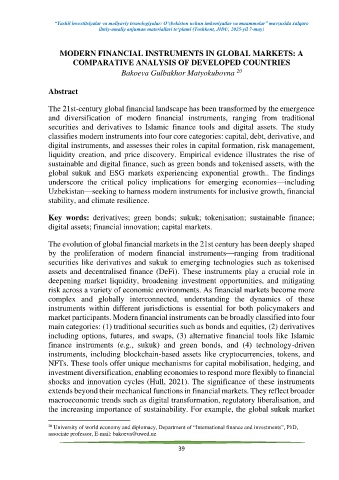 Page 39 - "Green Investments and financial technologies: opportunities and challenges for Uzbekistan" International Scientific and Practical Conference
