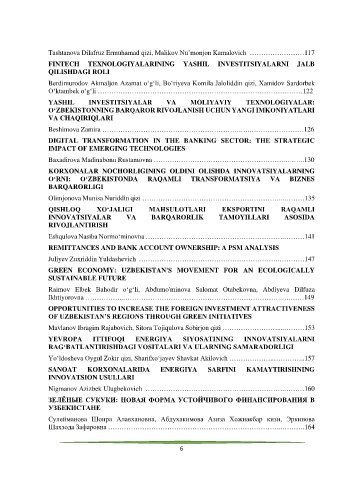 Page 6 - "Green Investments and financial technologies: opportunities and challenges for Uzbekistan" International Scientific and Practical Conference