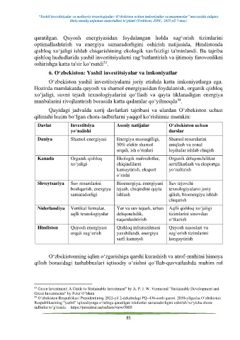 Page 85 - "Green Investments and financial technologies: opportunities and challenges for Uzbekistan" International Scientific and Practical Conference