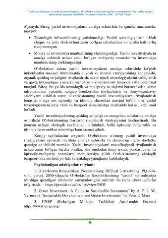 Page 86 - "Green Investments and financial technologies: opportunities and challenges for Uzbekistan" International Scientific and Practical Conference