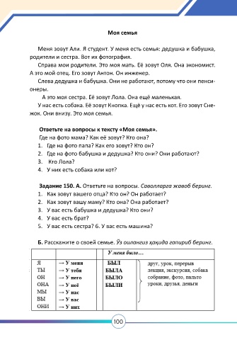 Б. Расскажите о своей семье. Ўз оилангиз ҳақида гапириб беринг.