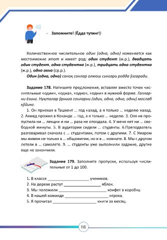Задание 178. Напишите предложения, вставляя вместо точек чис-