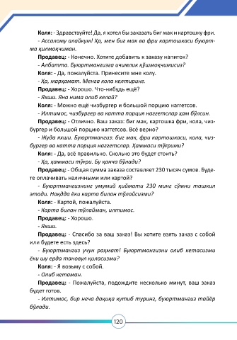 - Ассалому алайкум! Ҳа, мен биг мак ва фри картошкаси буюрт-