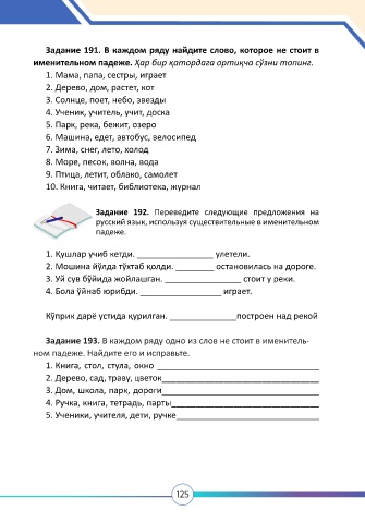 Задание 193. В каждом ряду одно из слов не стоит в именитель-