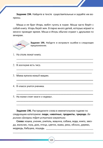 Задание 194. Найдите в тексте существительные и задайте им во-