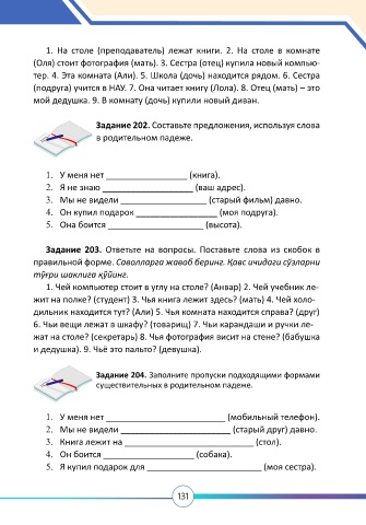 Задание 203. Ответьте на вопросы. Поставьте слова из скобок в