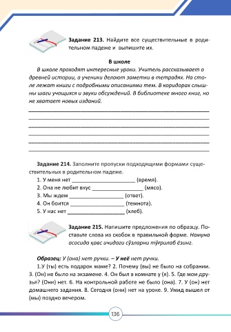 Задание 214. Заполните пропуски подходящими формами суще-