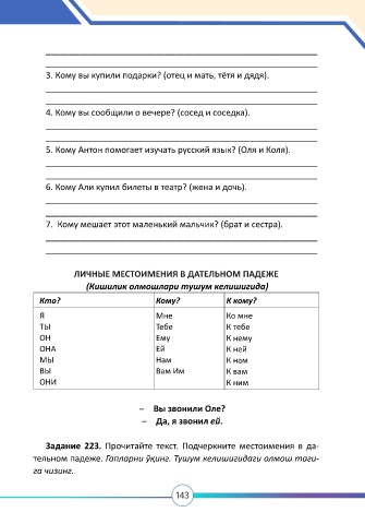 Задание 223. Прочитайте текст. Подчеркните местоимения в да-