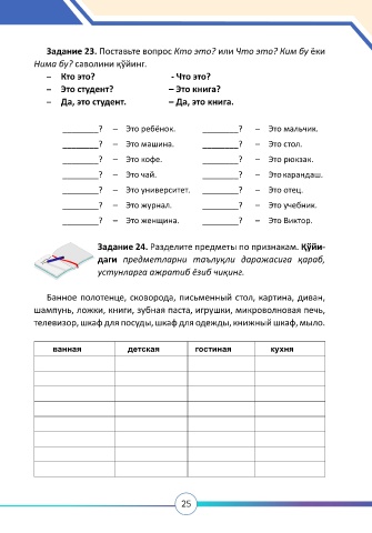 Задание 24. Разделите предметы по признакам. Қўйи-