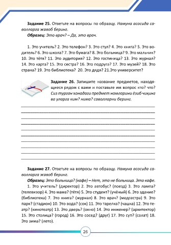 Задание 25. Ответьте на вопросы по образцу. Намуна асосида са-