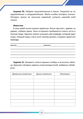 Задание 31. Запишите слова в нужные столбцы и заполните табли-