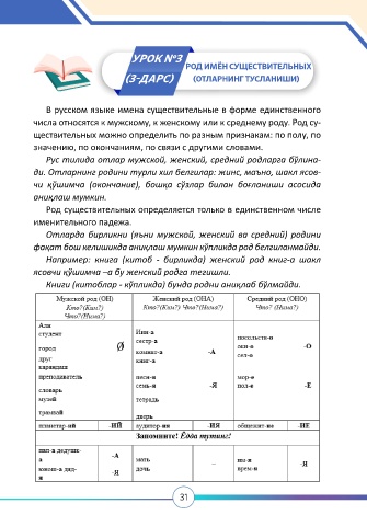 Рус тилида отлар мужской, женский, средний родларга бўлина-