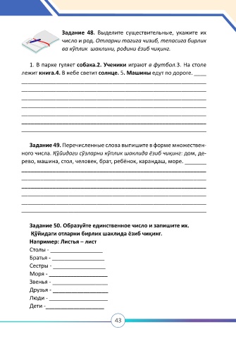 Задание 50. Образуйте единственное число и запишите их.