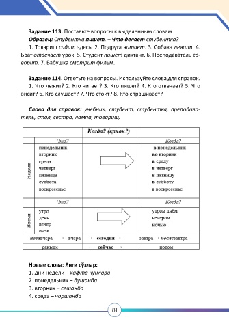 Задание 114. Ответьте на вопросы. Используйте слова для справок.