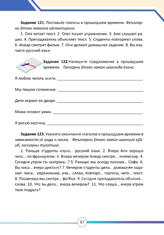 Задание 121. Поставьте глаголы в прошедшем времени. Феъллар-