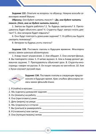 Задание 133. Поставьте глаголы в будущем времени. Феълларни