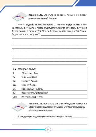 Задание 135. Ответьте на вопросы письменно. Савол-