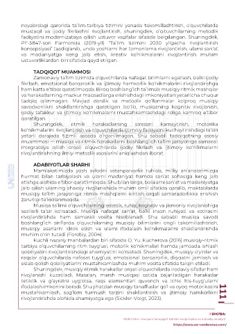 ham katta e’tibor qaratilmoqda. Biroq boshlang‘ich ta’limda musiqiy ritmik mashqlar