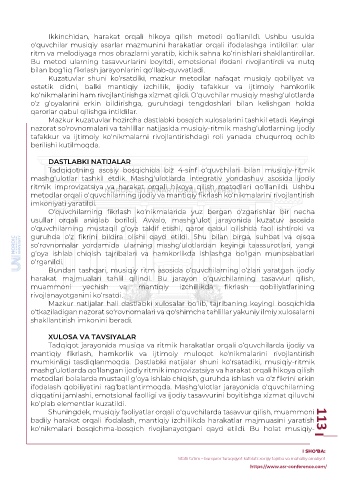 mashg‘ulotlarda qo‘llangan ijodiy ritmik improvizatsiya va harakat orqali hikoya qilish