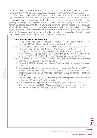 10. Mustafoyev, B. Musiqa o‘qitish metodikasi. Toshkent: B. 7-9.