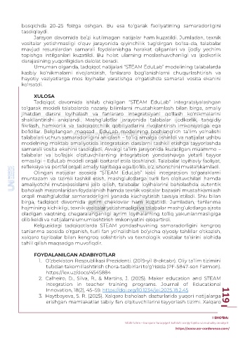 3. Haytbayeva, S. R. (2025). Xalqaro baholash dasturlarida yuqori natijalarga 119