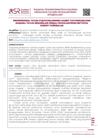 Page 123 - RAQAMLI TRANSFORMATSIYA DAVRIDA PEDAGOGIK TA’LIMNI RIVOJLANTIRISH ISTIQBOLLARI