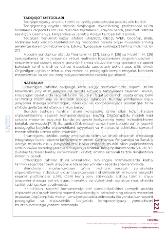 Page 124 - RAQAMLI TRANSFORMATSIYA DAVRIDA PEDAGOGIK TA’LIMNI RIVOJLANTIRISH ISTIQBOLLARI