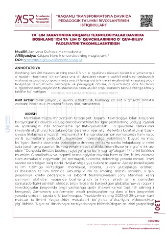 Page 132 - RAQAMLI TRANSFORMATSIYA DAVRIDA PEDAGOGIK TA’LIMNI RIVOJLANTIRISH ISTIQBOLLARI