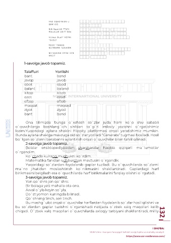 chiqadi. O`zbek xalq maqollari o`quvchilarda axloqiy tarbiyani shakllantiradi, milliy 132