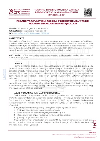 Page 136 - RAQAMLI TRANSFORMATSIYA DAVRIDA PEDAGOGIK TA’LIMNI RIVOJLANTIRISH ISTIQBOLLARI