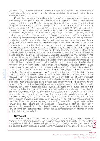 darajada oshiradi. Eksperimental guruhda, ya’ni o‘yinga asoslangan metodlar 159