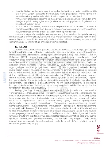 Page 167 - RAQAMLI TRANSFORMATSIYA DAVRIDA PEDAGOGIK TA’LIMNI RIVOJLANTIRISH ISTIQBOLLARI