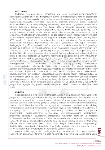 Page 168 - RAQAMLI TRANSFORMATSIYA DAVRIDA PEDAGOGIK TA’LIMNI RIVOJLANTIRISH ISTIQBOLLARI