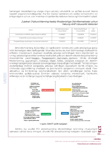 2-jadval. O‘qituvchilarning Kasbiy Rivojlanishiga Oid Alternativalar uchun