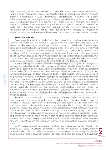 ham tanlangan modellarning (mentorlash va hamkorlik) xalqaro manbalar turidan