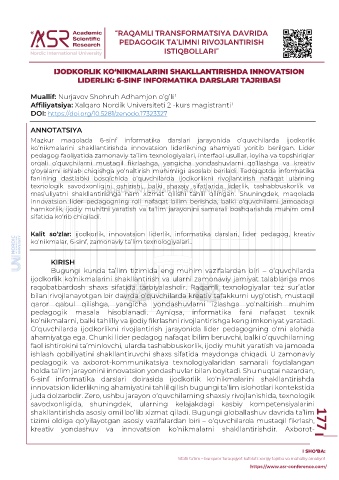 Page 179 - RAQAMLI TRANSFORMATSIYA DAVRIDA PEDAGOGIK TA’LIMNI RIVOJLANTIRISH ISTIQBOLLARI