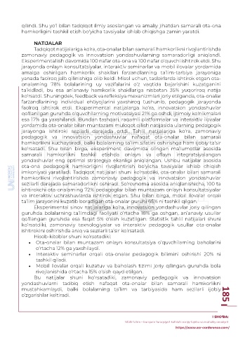 Bu natijalar shuni ko‘rsatadiki, zamonaviy pedagogik va innovatsion