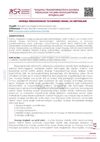 Kalit soʻzlar: musiqa pedagogikasi, ta’lim shakllari, ta’lim metodlari, interfaol metodlar, ijodiy