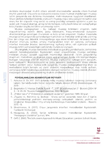 1. Ashurov B. Sh. XV1- XV11 asrlarda milliy musiqiy tafakkur rivojining zamonaviy