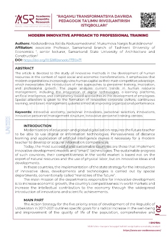 Page 22 - RAQAMLI TRANSFORMATSIYA DAVRIDA PEDAGOGIK TA’LIMNI RIVOJLANTIRISH ISTIQBOLLARI