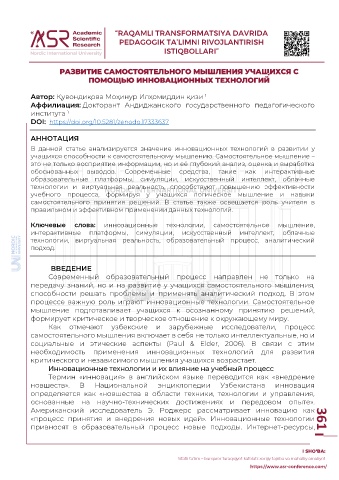 Page 363 - RAQAMLI TRANSFORMATSIYA DAVRIDA PEDAGOGIK TA’LIMNI RIVOJLANTIRISH ISTIQBOLLARI