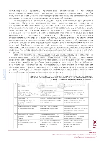 Таблица 1. Инновационные технологии и их роль в развитии