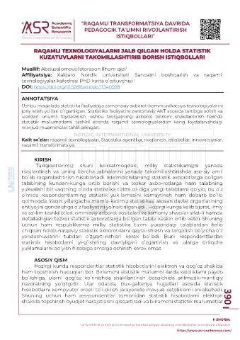 Ushbu maqolada statistika faoliyatiga zamonaviy axborot-kommunikatsiya texnologiyalarini