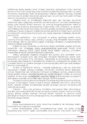 Page 412 - RAQAMLI TRANSFORMATSIYA DAVRIDA PEDAGOGIK TA’LIMNI RIVOJLANTIRISH ISTIQBOLLARI